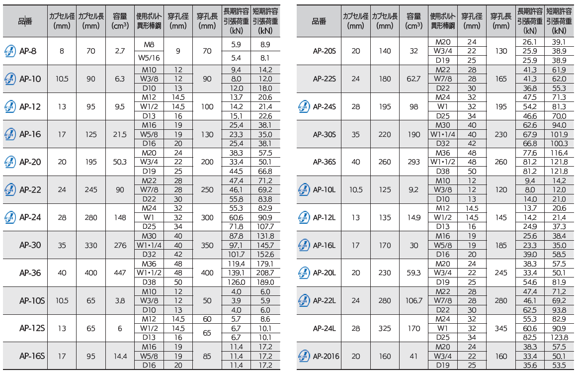 接着系アンカー 「カプセル型」ARケミカルセッター® AP